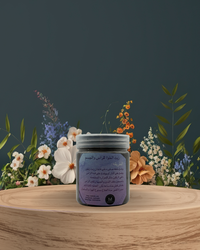 • يحتوي الزيت على مكونات طبيعية تساعد في تهدئة الأعصاب وتخفيف التوتر والتوتر العصبي المرتبط بالصداع.